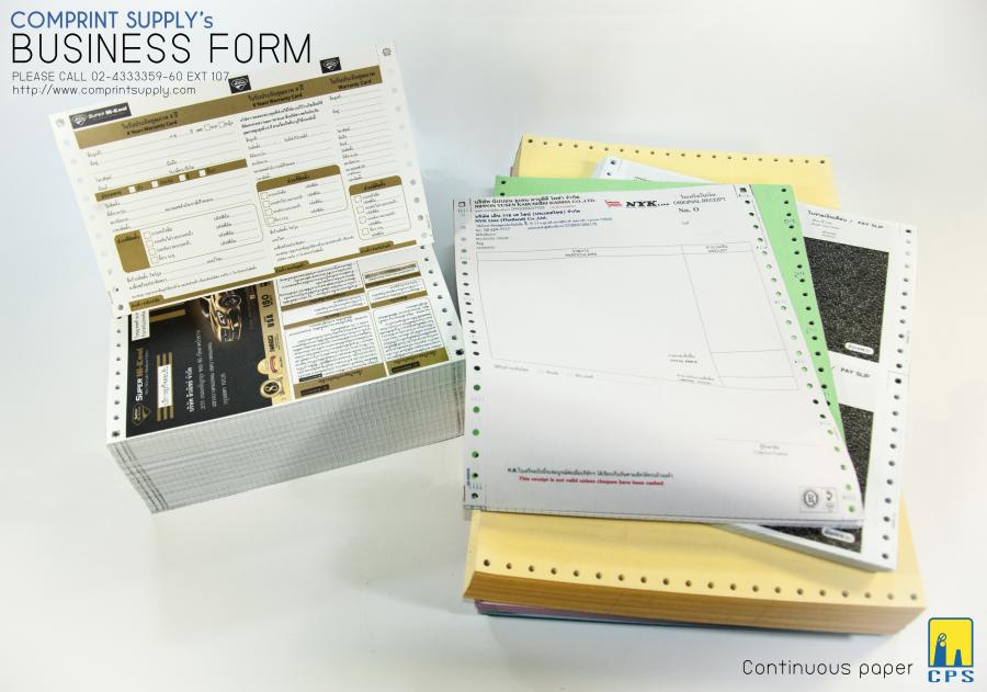 บริษัทเป็นผู้ ผลิตกระดาษต่อเนื่อง แบบฟอร์มคอมพิวเตอร์ สติ๊กเกอร์ต่อเนื่อง ซองเงินเดือน ใบเสร็จรับเงิน ใบกำกับภาษี หนังสือรับรอง
